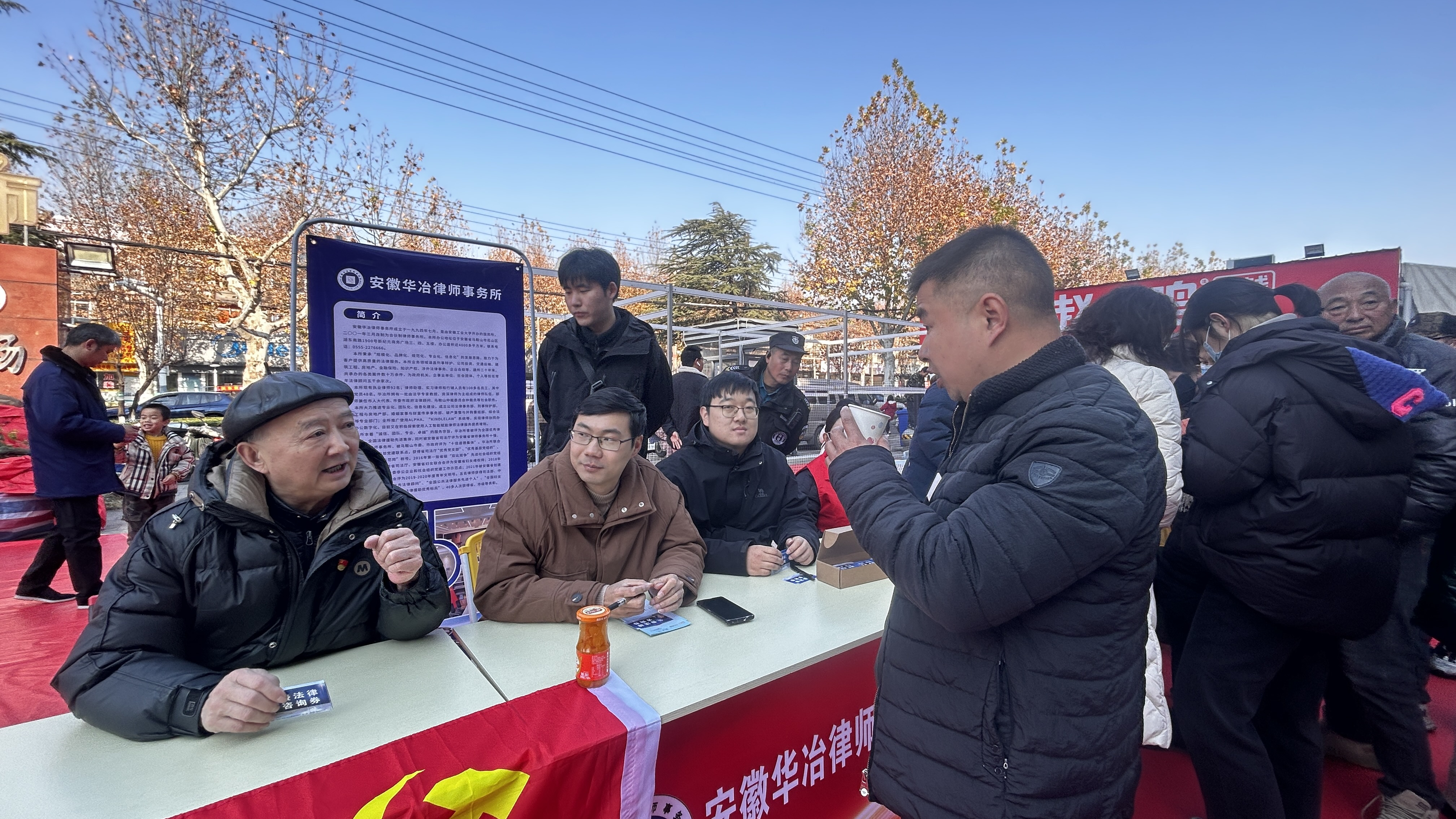 为进一步发挥街道商会桥梁纽带作用,切实服务辖区企业发展、增进民生福祉,营造欢乐祥和的迎新氛围。2025年12月27日,解放路街道商会与桃源路街道商会联合举办的“服务民生·助力经济”社区服务日活动火热开展,累计吸引数百名居民踊跃参与,现场热闹非凡。安徽华冶律师事务所联合党支部积极响应号召,组织党员律师及积极分子组成普法志愿队,深入社区为居民提供免费法律咨询与普法宣传,以专业力量护航民生,以实际行动践行初心。